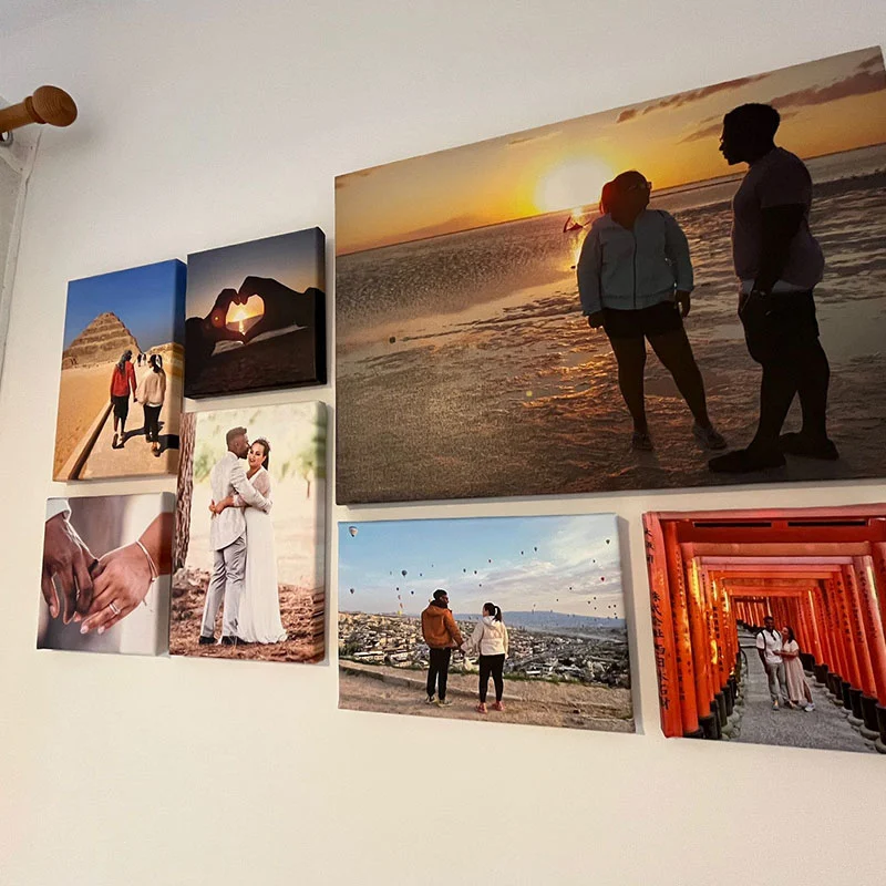 Celebrate your shared adventures with this custom canvas print featuring a romantic travel moment. From deserts to mountaintops, each image is a snapshot of love and discovery—perfect for couples who explore the world together. Printed on high-quality, fade-resistant canvas for timeless display.